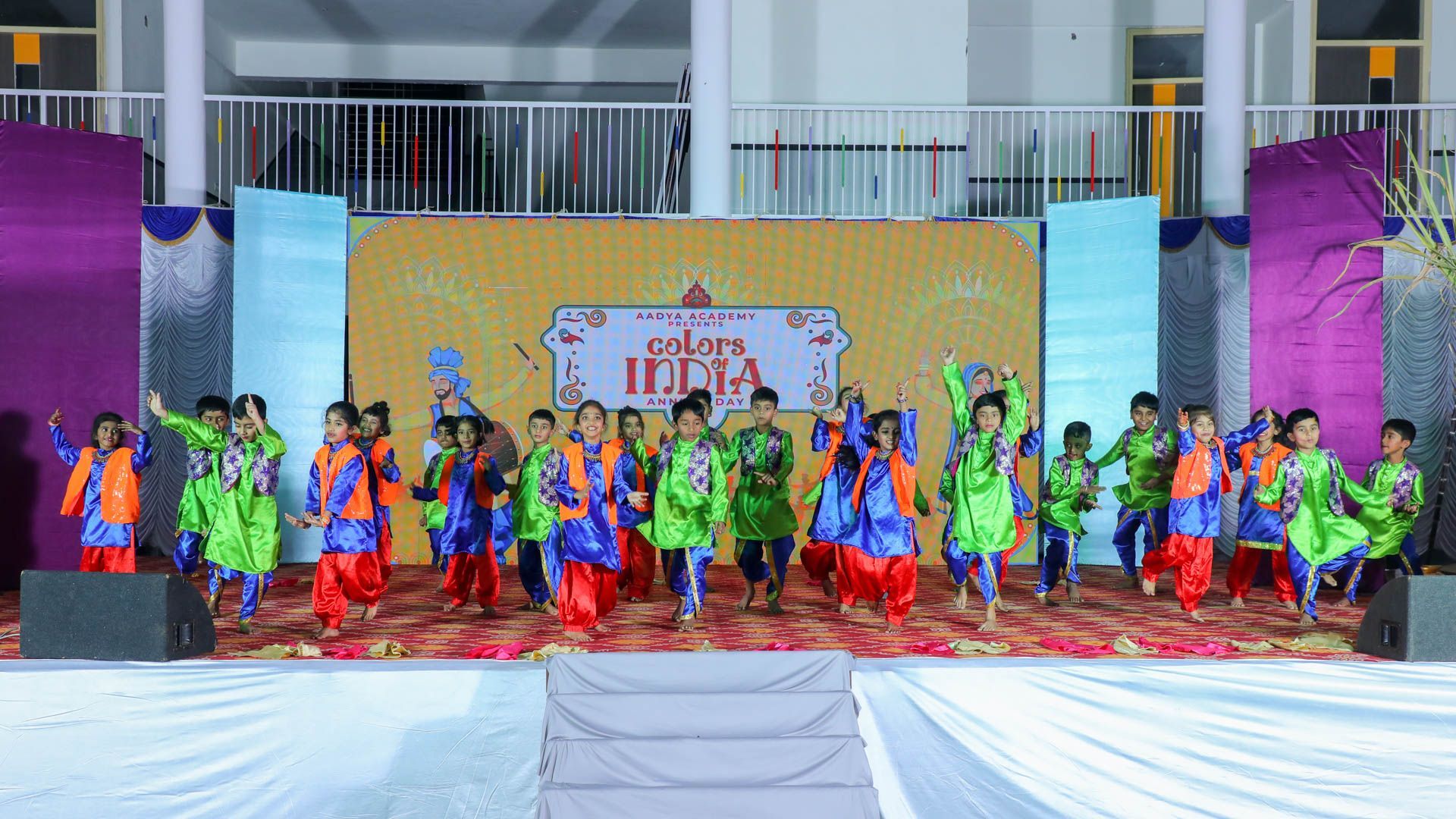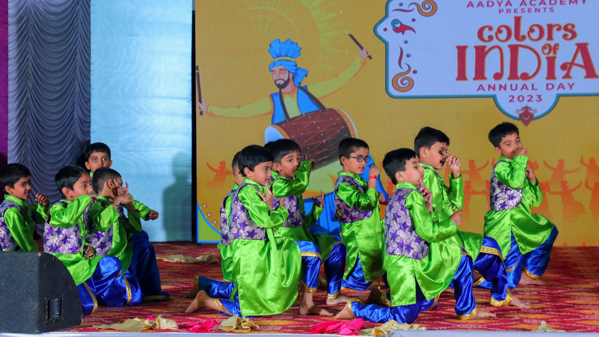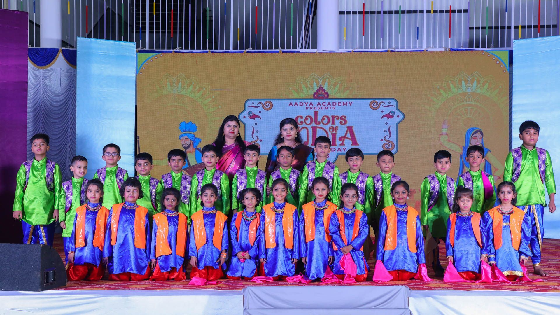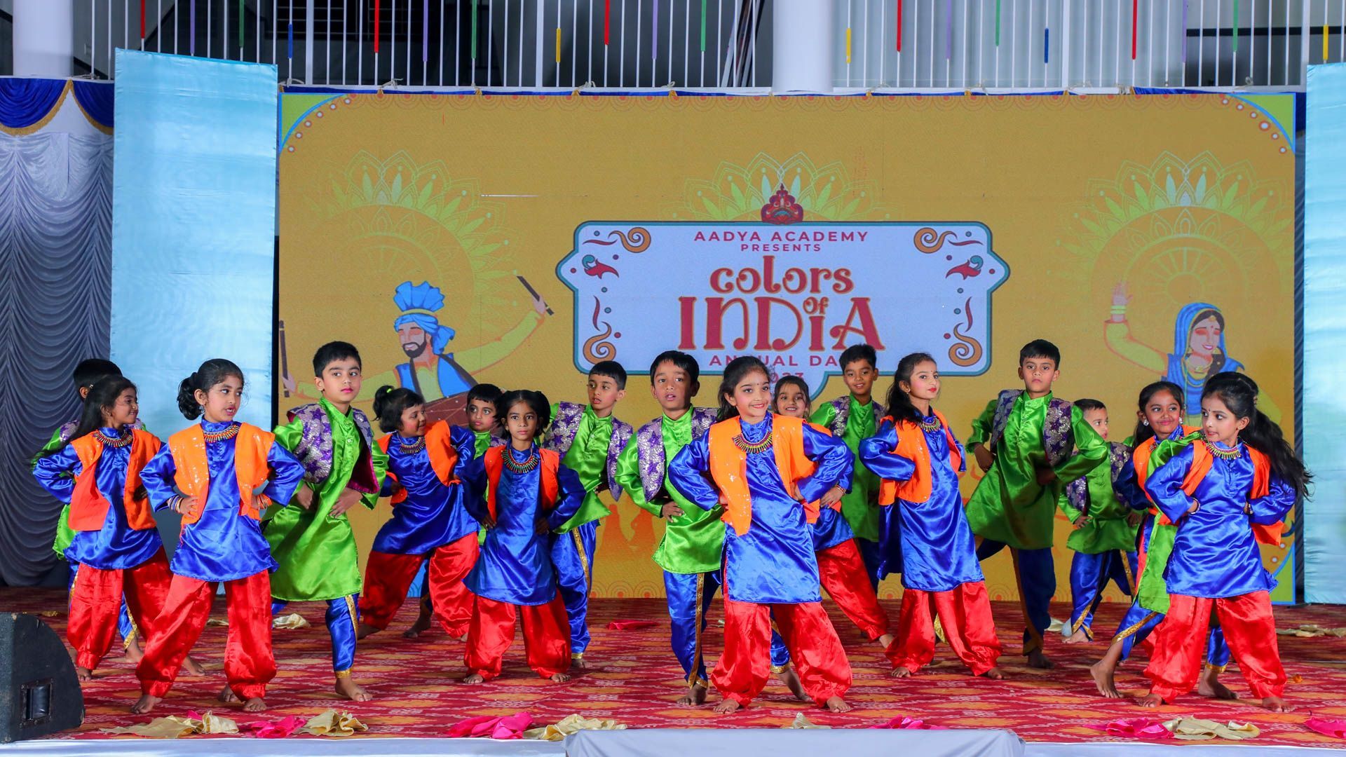 The Annual Day celebration at Aadya Academy was a vibrant showcase of the Colors of India. The school's talented students and teachers put on a spectacular performance, highlighting the rich cultural heritage of the country through music, dance, and drama. The theme of the celebration was brought to life with a spectacular display of traditional Indian costumes and intricate stage decorations. The event was a true celebration of the country's diverse and colorful history and left everyone in attendance feeling proud and inspired.