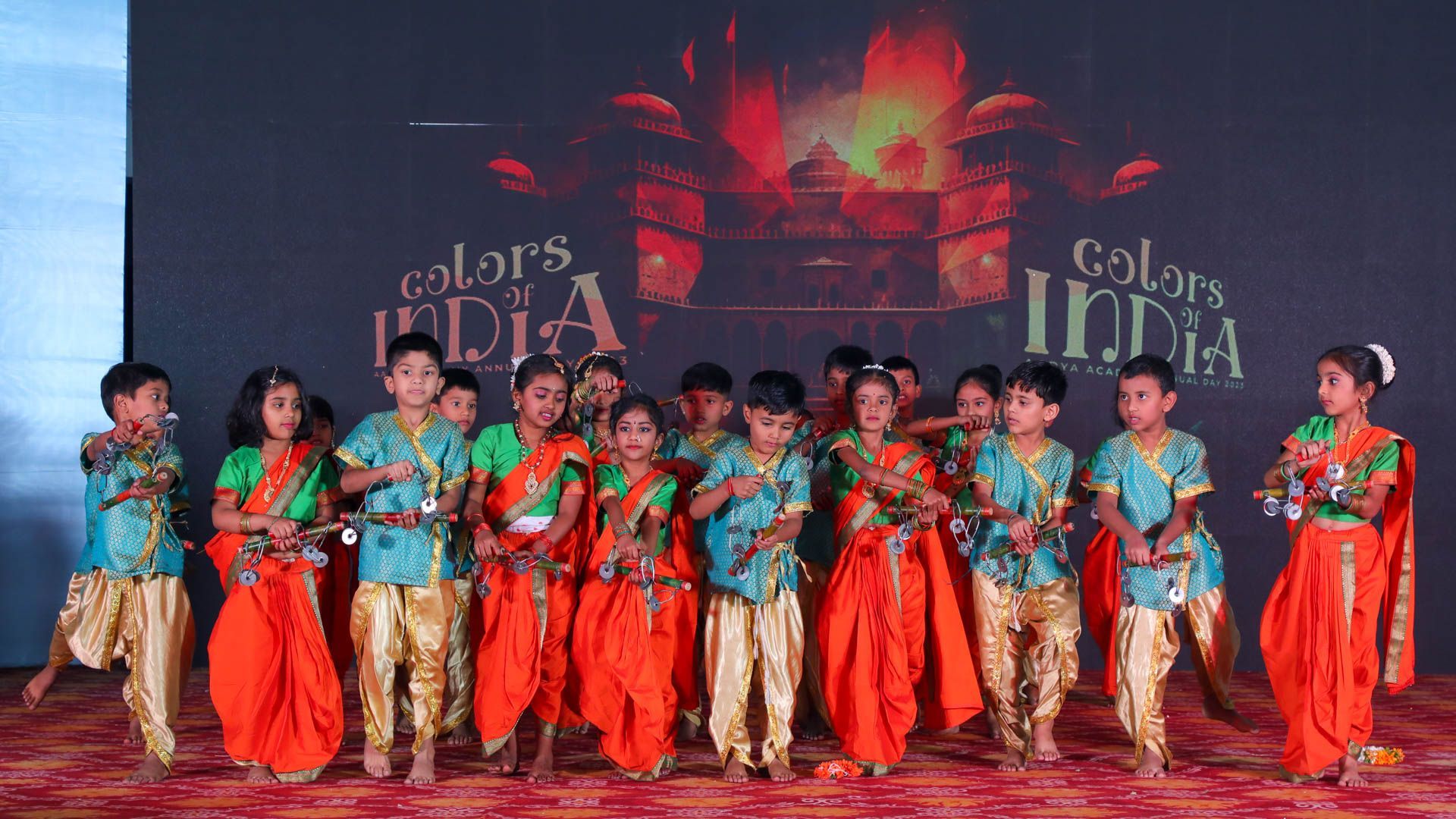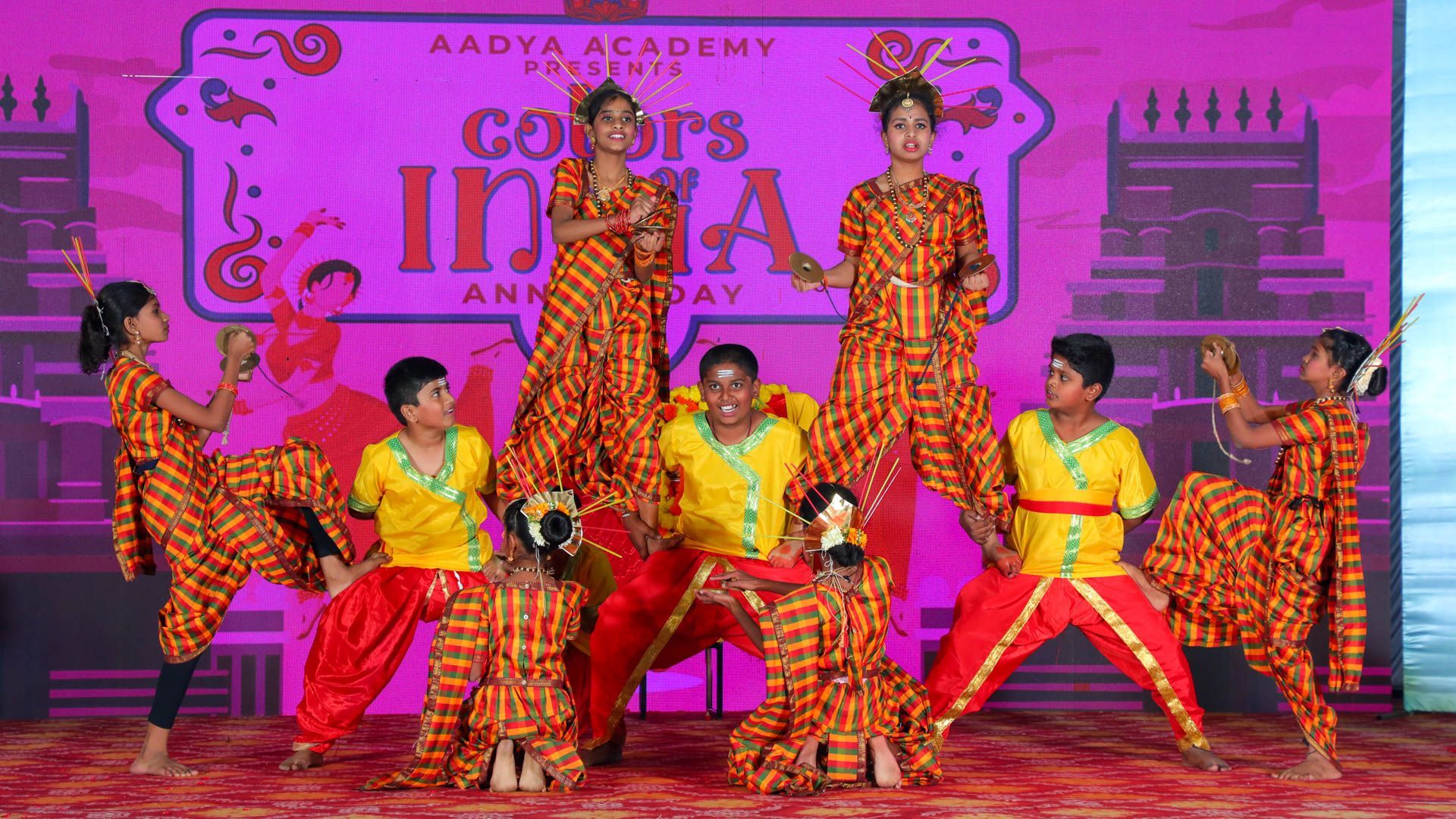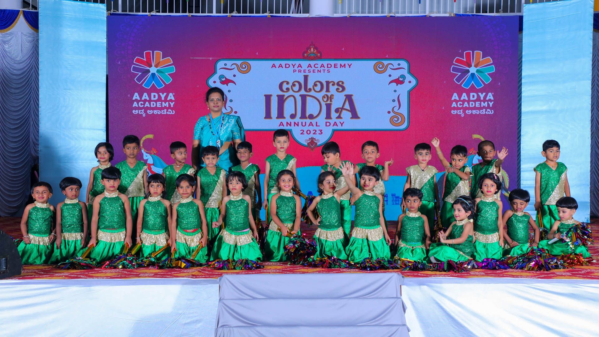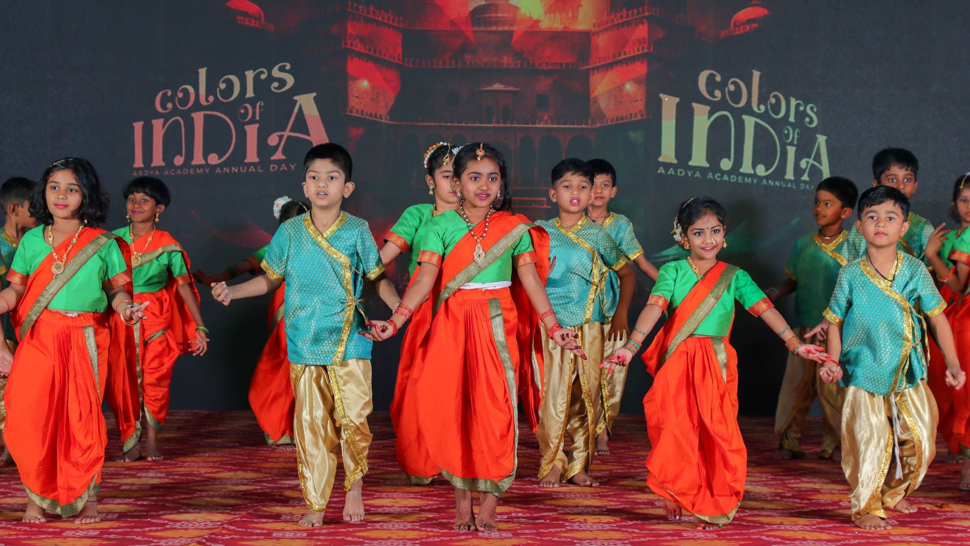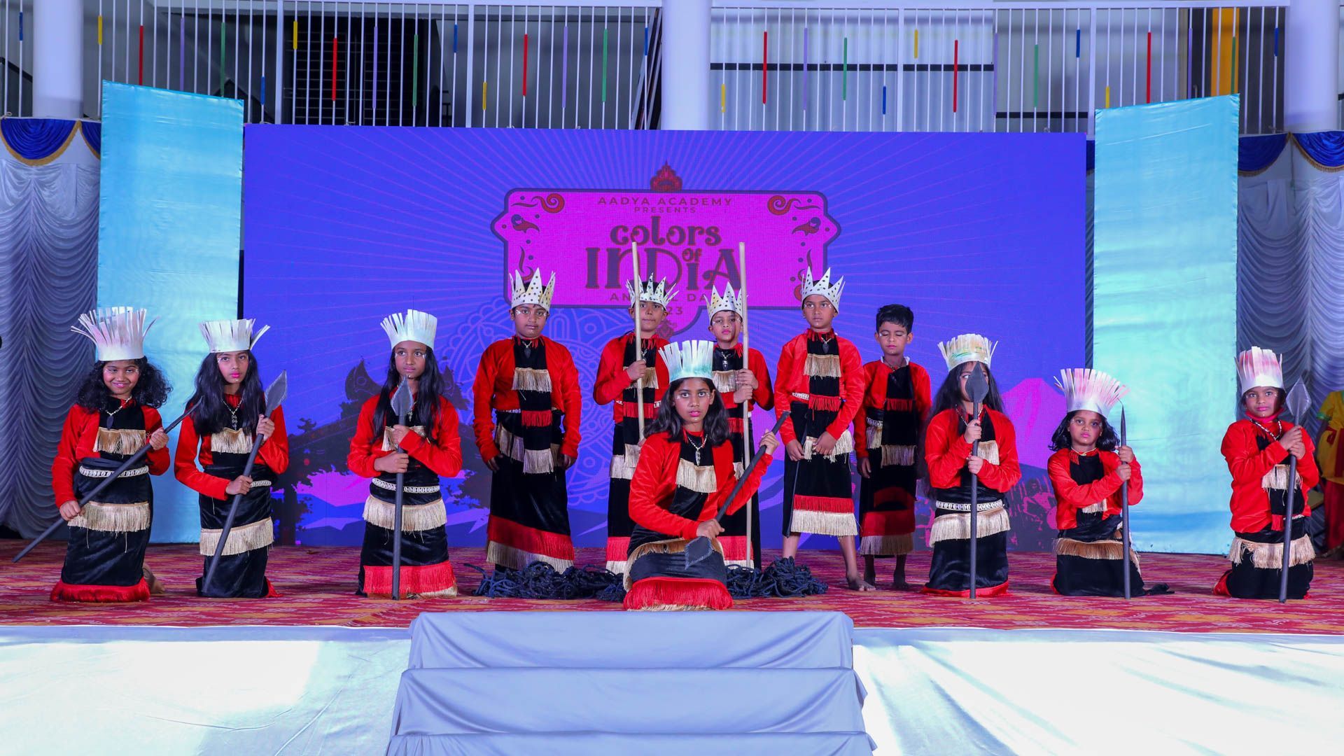 The Annual Day celebration at Aadya Academy was a vibrant showcase of the Colors of India. The school's talented students and teachers put on a spectacular performance, highlighting the rich cultural heritage of the country through music, dance, and drama. The theme of the celebration was brought to life with a spectacular display of traditional Indian costumes and intricate stage decorations. The event was a true celebration of the country's diverse and colorful history and left everyone in attendance feeling proud and inspired.