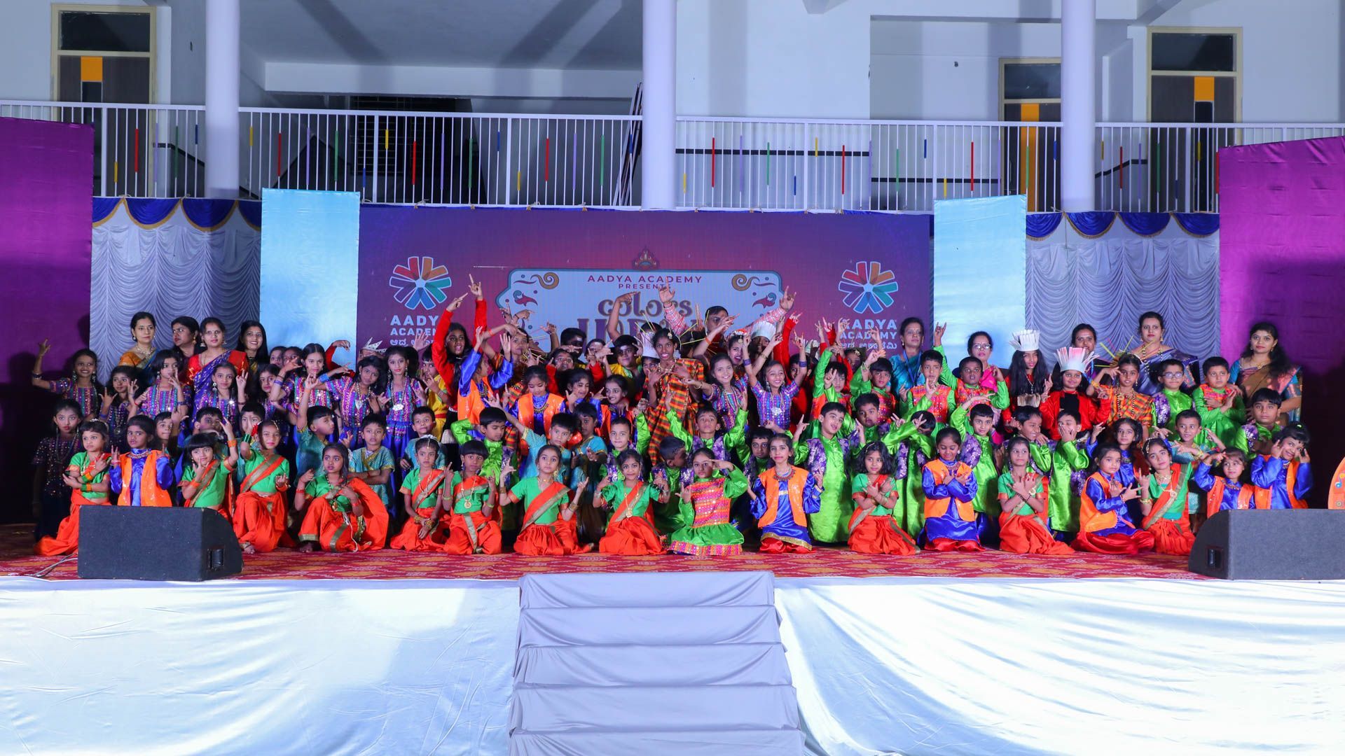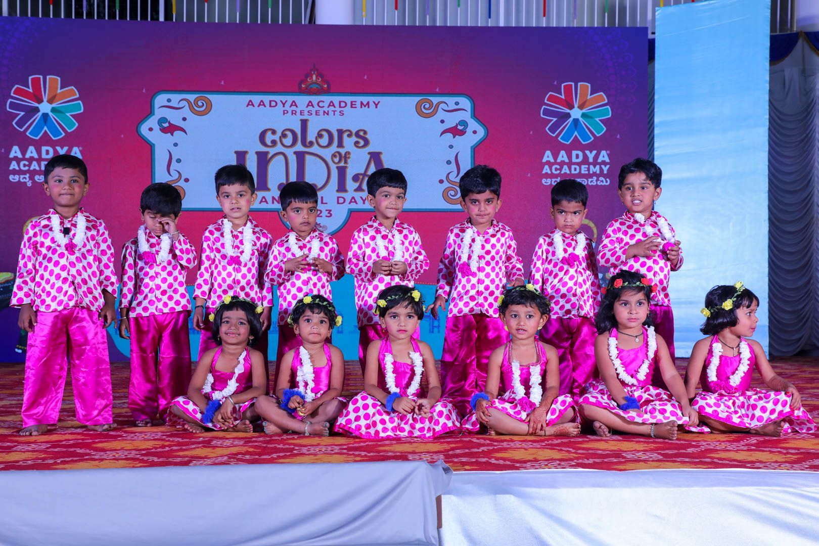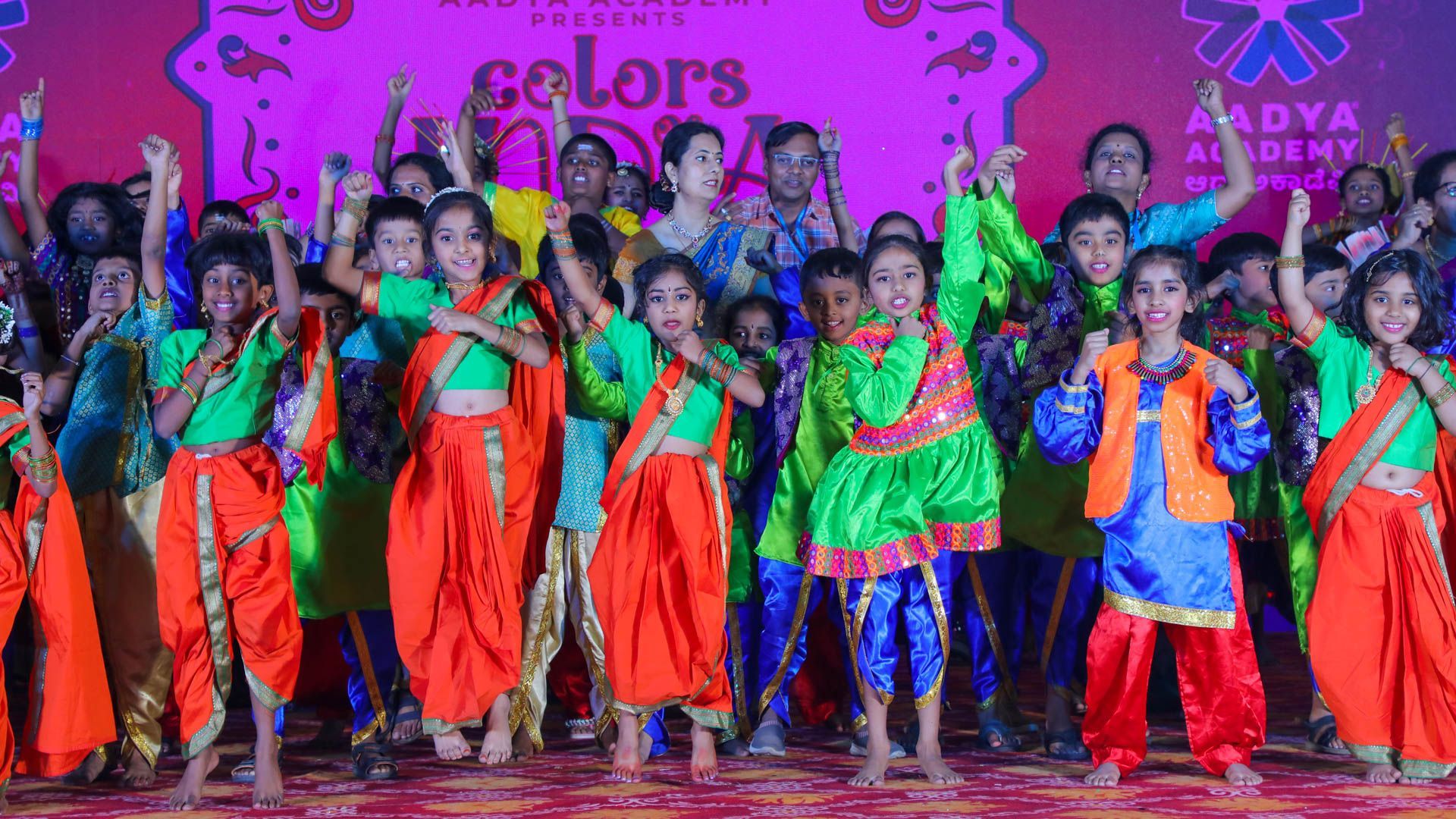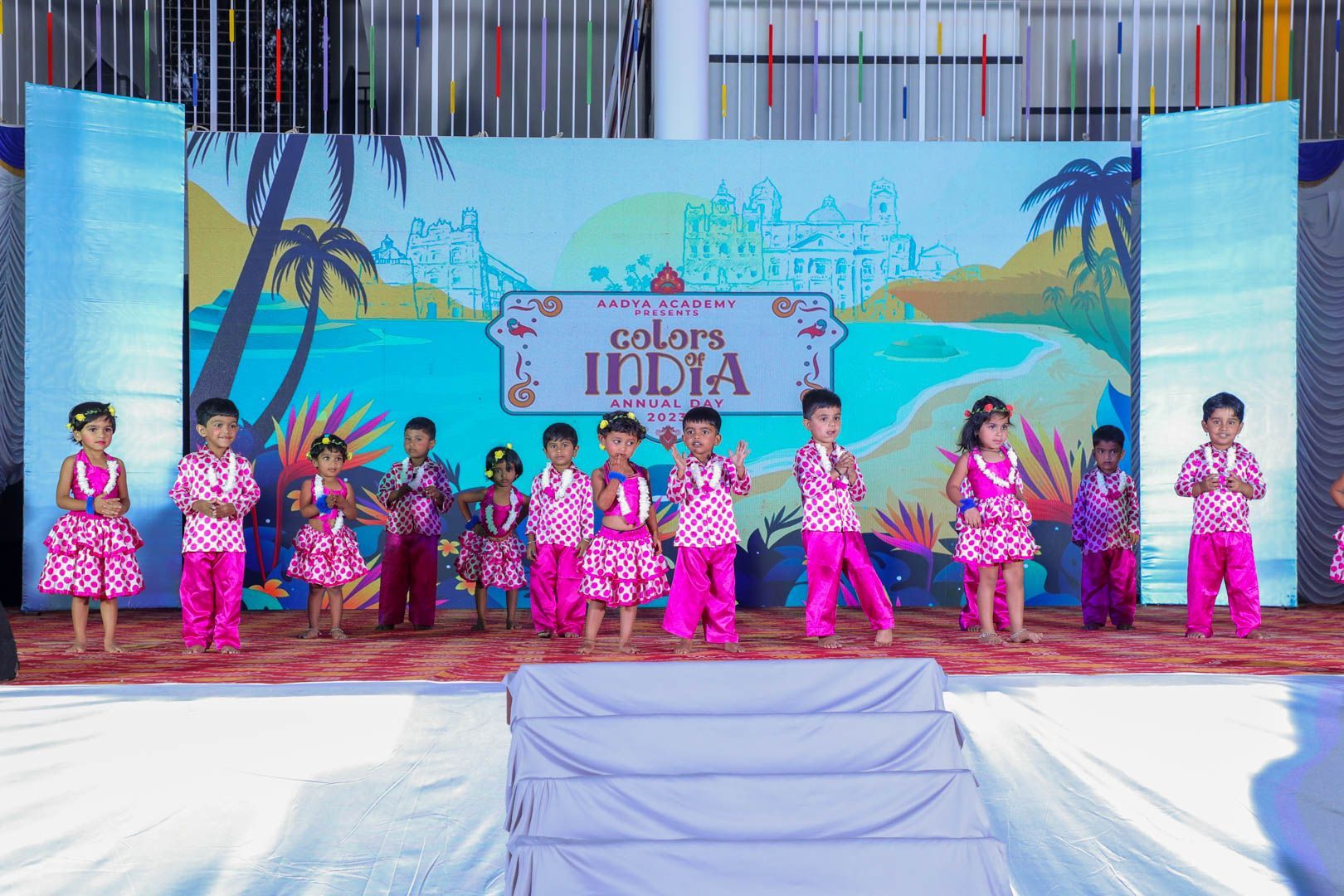 The Annual Day celebration at Aadya Academy was a vibrant showcase of the Colors of India. The school's talented students and teachers put on a spectacular performance, highlighting the rich cultural heritage of the country through music, dance, and drama. The theme of the celebration was brought to life with a spectacular display of traditional Indian costumes and intricate stage decorations. The event was a true celebration of the country's diverse and colorful history and left everyone in attendance feeling proud and inspired.