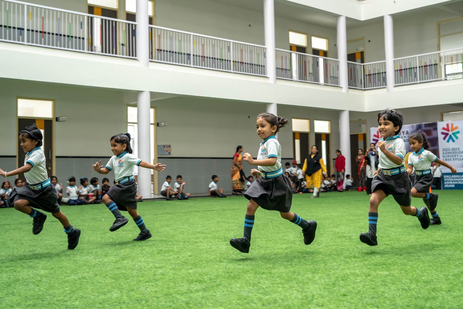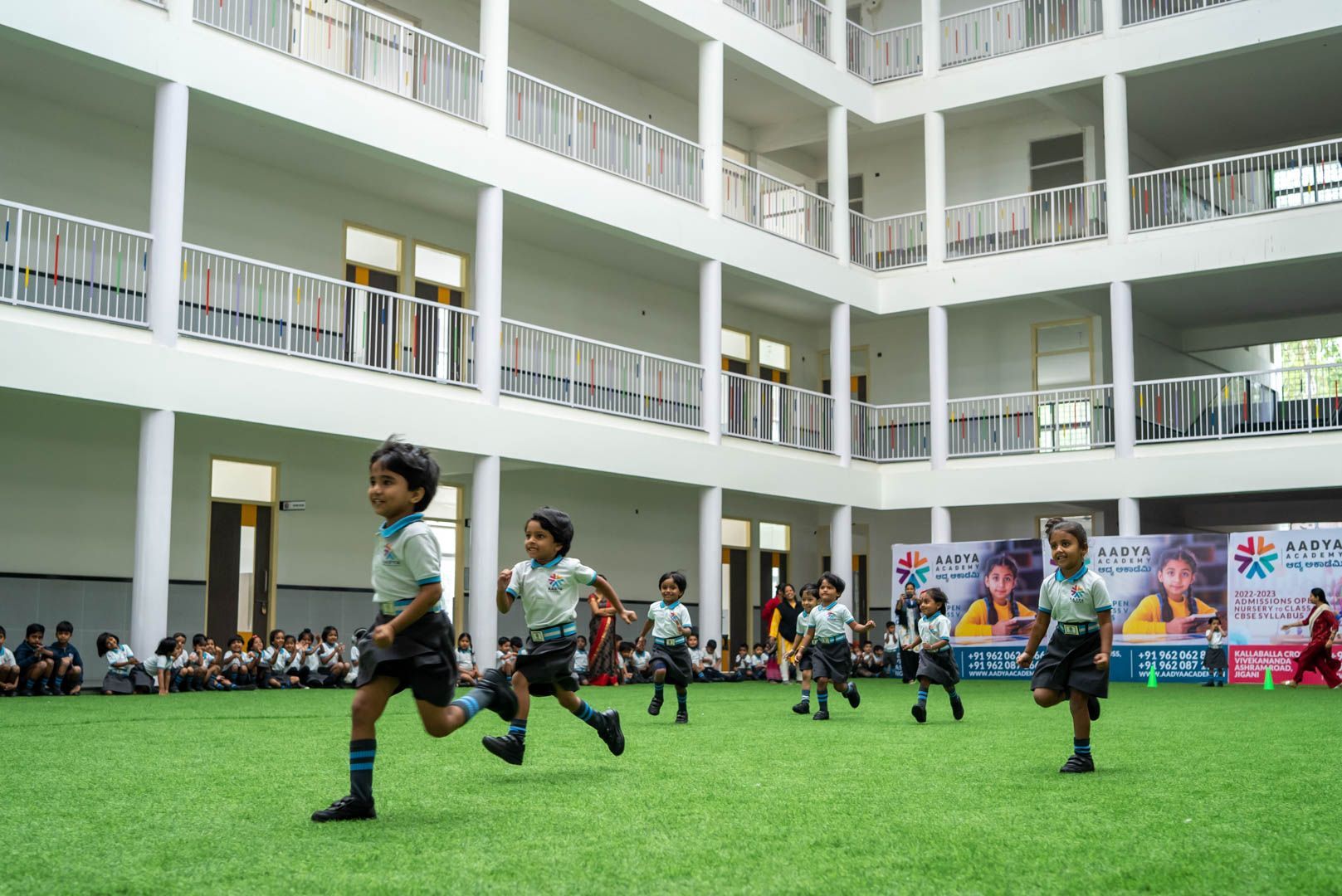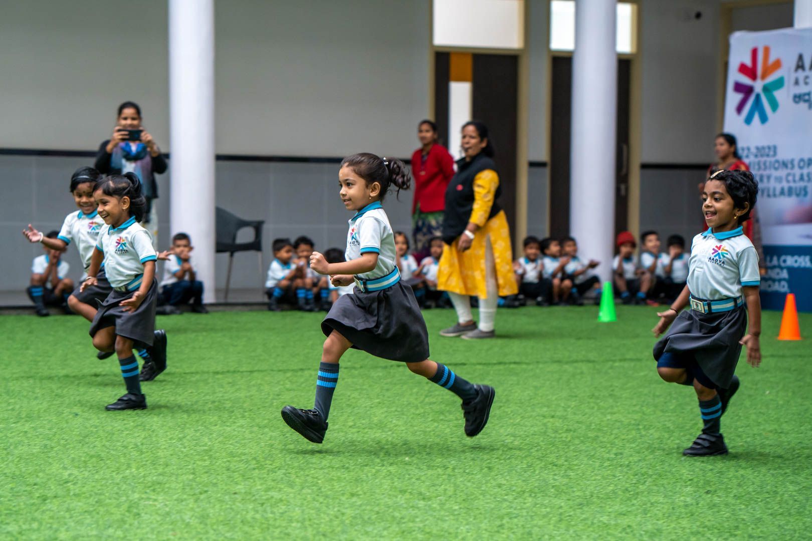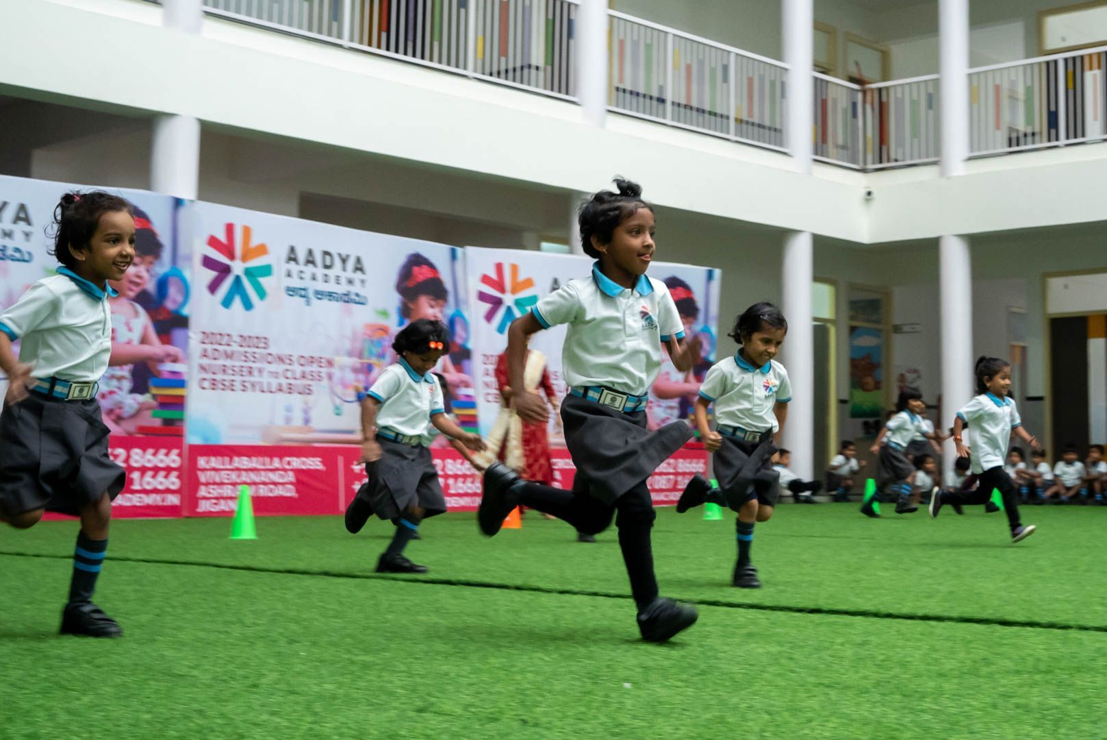Aadya Academy celebrated its Sports Day with a flurry of athletic competitions and high energy performances from students. Excitement filled the air as young athletes showed their skills in a variety of events, from sprints to long jumps. The stands were packed with proud parents, friends, and teachers cheering on their favorite competitors. The day was filled with memorable moments and showcased the hard work and dedication of the student-athletes. It was a true celebration of sportsmanship, teamwork, and the joy of competition.